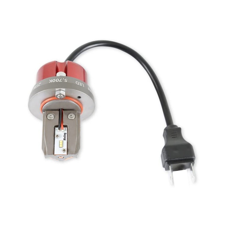 We all love the look of classic sealed beam headlights, but the dim halogen light output makes nighttime driving a potentially risky endeavor for you and your beloved classic. Holley's new RetroBright LED Headlights offer a number of advantages over traditional sealed beam headlights such as plug and play compatibility, better visibility, and 6 times longer life. Not only that, but because they are LED they take up less space, create far less heat, and use less power than other headlights. Our low-profile housing design fits most shallow headlight buckets found on classic cars without the hassle of cutting or drilling. Holley worked closely with Morimoto, a leader in lighting design, to develop our line-up of lighting solutions that boast a classic look with modern lighting technology. A special PWM LED driver resides inside of the headlight to keep the LEDs running at their peak intensity, even during prolonged periods of use. For example, the 7" Round LED produces 32,000 Candela for low beam, and 53,000 Candela for high beam, which is nearly three times more light output than your original headlights. *HIGH-BEAM ONLY **For a single replacement cartridge/bulb for a 5.75" Round Housing. Will not fit larger housings. ***Sold individually. Replacement for Sealed Beam Trade Numbers: H5024, 6012, H6014, 6015, 6016, H6017, H6024, H6026 Bulb Type: PAR56;