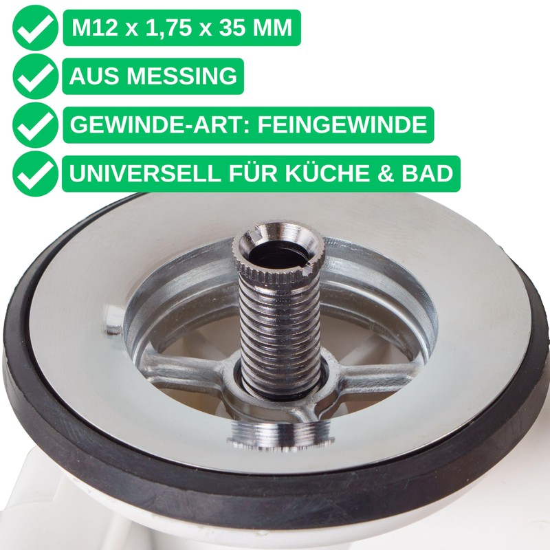 - 1 x sink strainer screw, size M12 x 1.75 x 35 mm, fine thread, made of brass, accessories for drain fittings