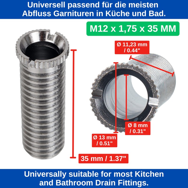 - Universally suitable for many drain fittings in the kitchen and bathroom.