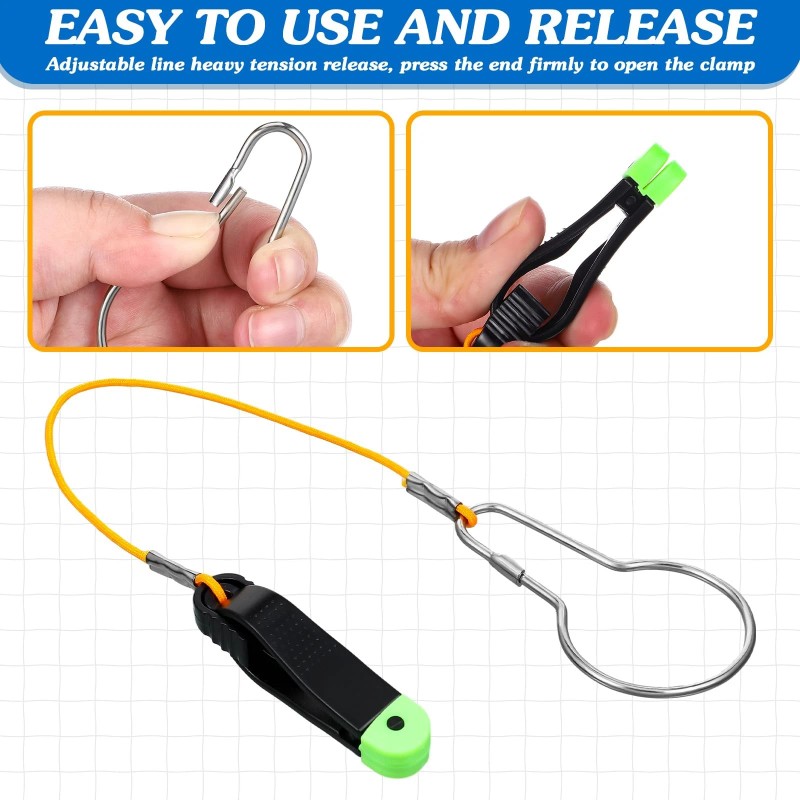 Ideal Dimensions: our fishing release clip features a compact size that makes it easy to handle; With a release clip measuring 2.2 inches and a leader spanning 3.54 inches/ 9 cm long, it offers the ideal blend of convenience and functionality to aid in your angling pursuits