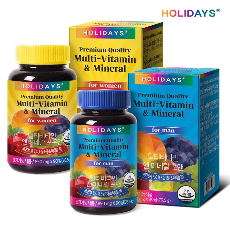 홀리데이즈 멀티비타민미네랄 포맨+포우먼 90정 1병