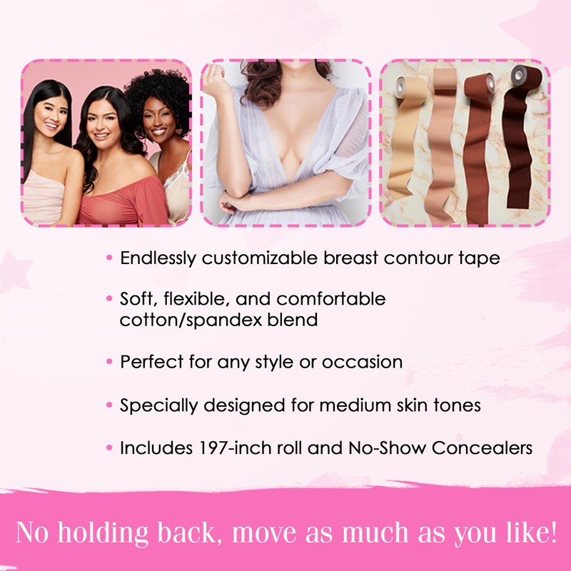 - Multipurpose Fashion Tape: Pull off any outfit without worries! This breast tape is ideal for contouring, lifting, and supporting all breast cup sizes. Cut, stretch, and shape the contour tape to size. Wear it with any type of clothing and conceal what you don’t want to reveal!