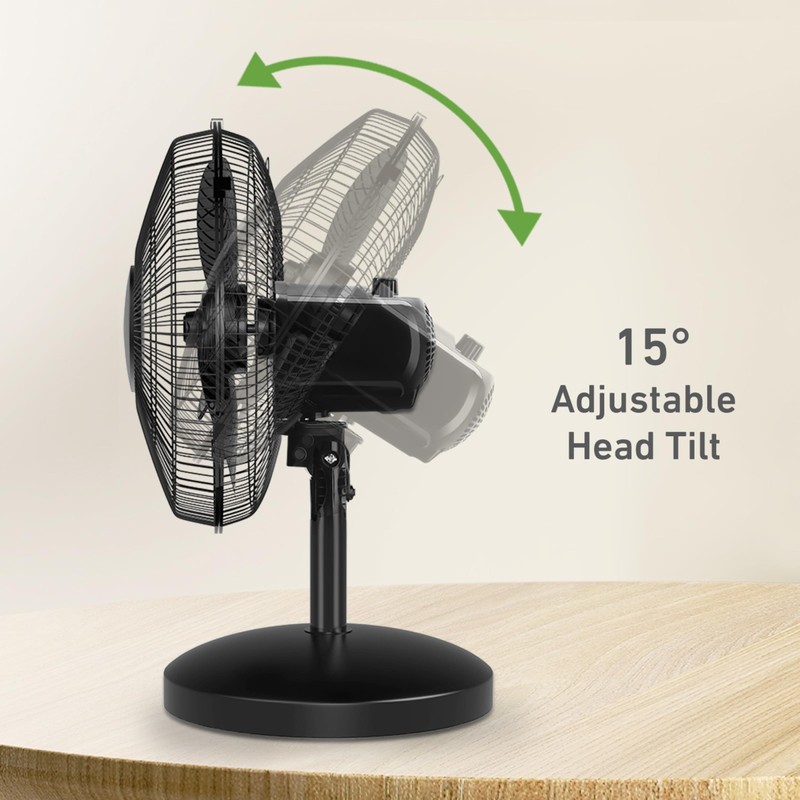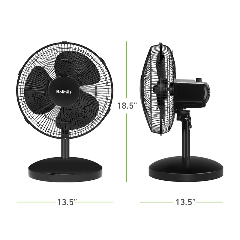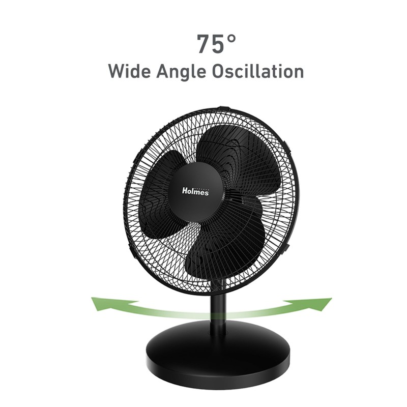 HOLMES 12" Table Fan, 75° Oscillation, 3 Speeds, 15° Adjustable Head Tilt, Ideal for Home, Bedroom or Office, Black