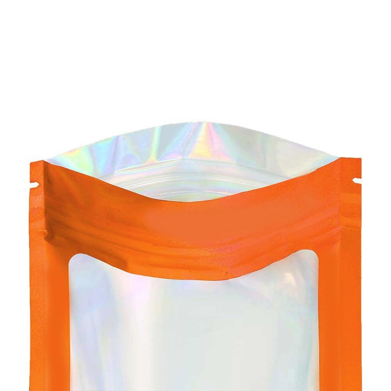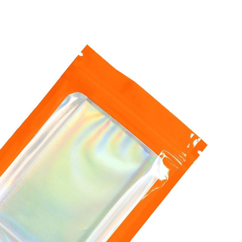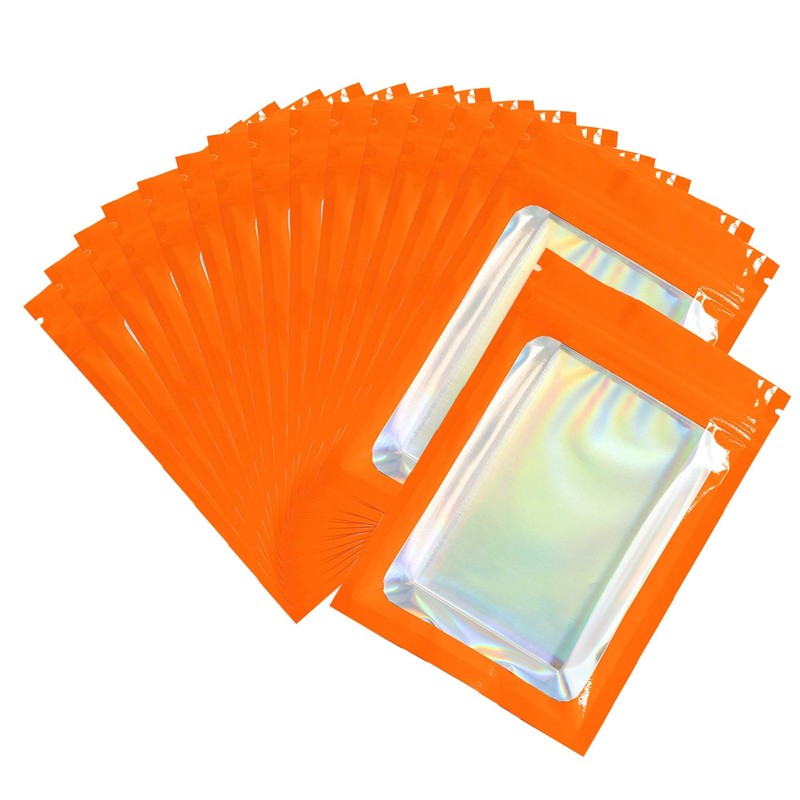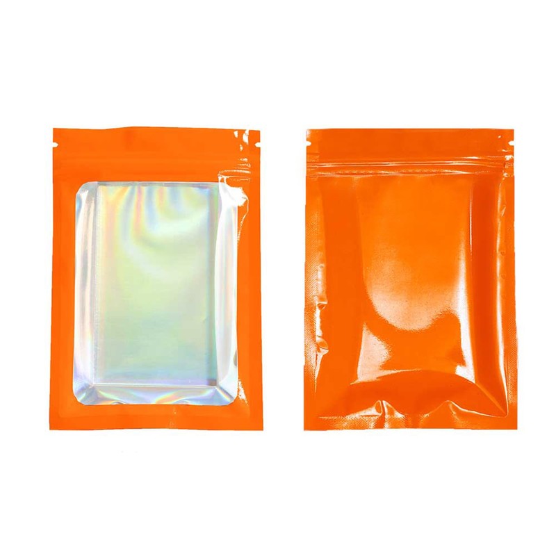 Holographic Foil Clear Window & Orange Resealable Zip Baggies for Small Business, Home Use, Food Storage, Beauty Sample, Bulk, DIY Hangover Kit Bags (100, 4.72 inch x 7.87 inch)