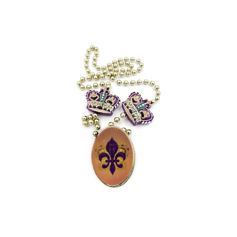 - Holographic Mardi Gras Bead Necklace Three Distinct Images Fleur de Lis Comedy & Tragedy Happy