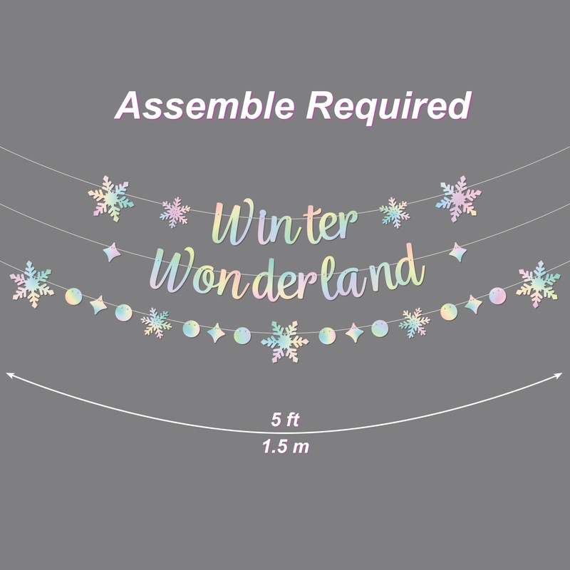- Winter Wonderland Decor: Add a touch of enchantment with this holographic banner featuring the words 'Winter Wonderland' and colorful snowflake garlands