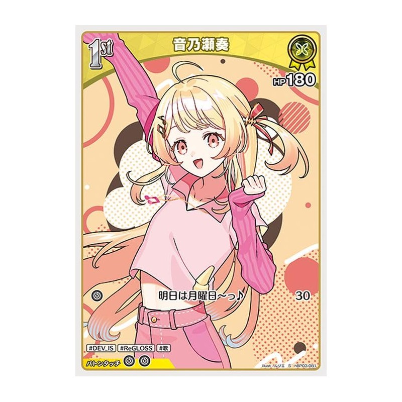- ★Hololive OFFICIAL CARD GAME "Elite Spark" (hBP03) recording; hBP03-081; Card Name: Shun Otonose; Category: Hologomen; Color: Yellow; Tag: #DEV_IS #ReGLOSS; HP: 180; Rarity: S (special)