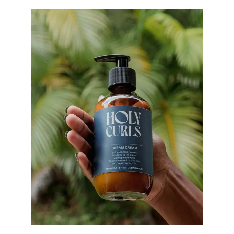 The Holy Curls Cream is the ultimate hydrating hero for soft, defined curls, without the sticky feel. This cream is packed with plant power, starring shea butter and baobab oil. Shea butter nourishes deeply and leaves every strand silky smooth, while baobab oil, rich in vitamins and omegas, strengthens your hair and adds a beautiful shine.