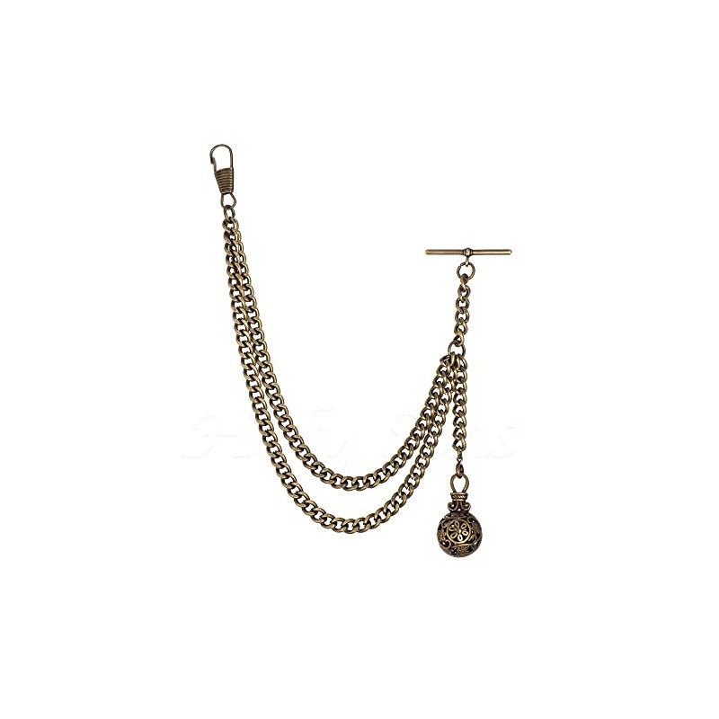 Holy Sins Jewellery Handmade in The UK Vintage Brass Bronze Colour Albert Pocket Watch Chain with Hollow Pendant (8")
