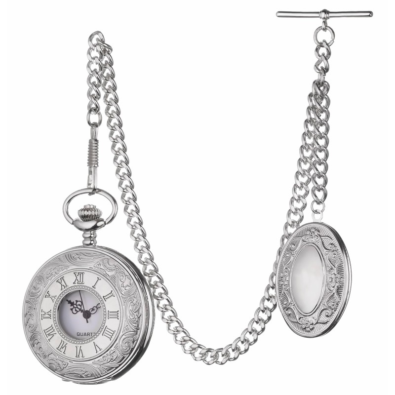 Holy Sins Jewellery Silver Colour Quartz Pocket Watch with Albert Chain