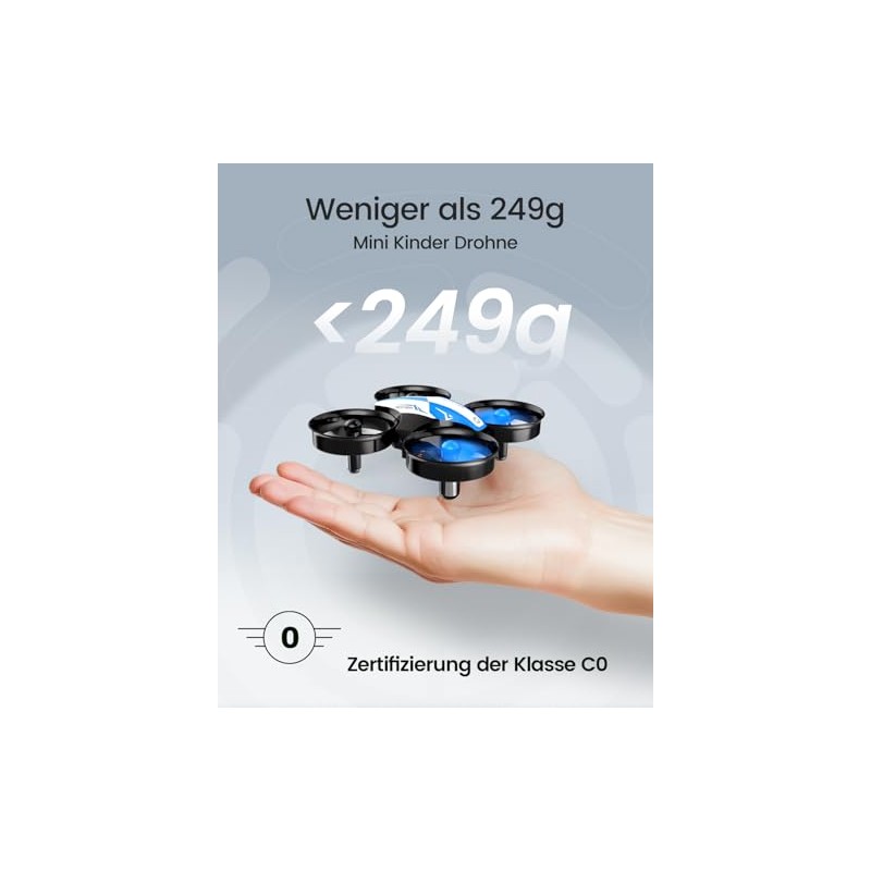 - Klüger und Sicherer:Die kleine Drohne behält die aktuelle Höhe bei, wenn du den Gashebel der Fernbedienung loslässt. Andere Funktionen wie One Key Starten/Landung, Headless Modus, Not-Aus erlauben es grade Anfängern und Kindern, den Drohnenflug und die Steuerung leichter zu erlernen.