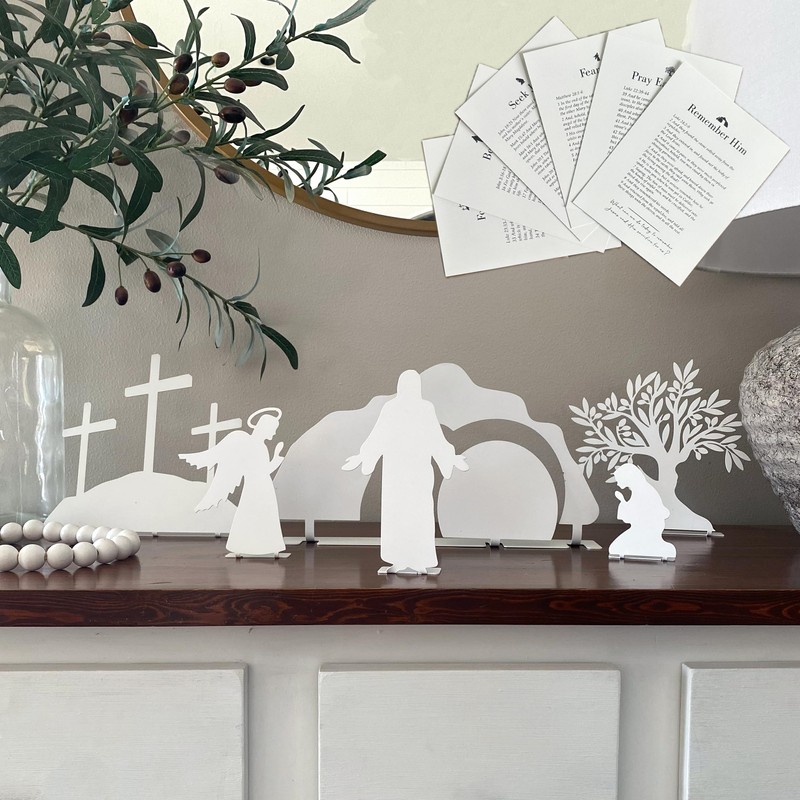 Holy Week Easter Advent - A Simple Family Tradition - Christian Easter Resurrection Scene Set Easter Display Religious Easter Decor Resurrection Decor (White)