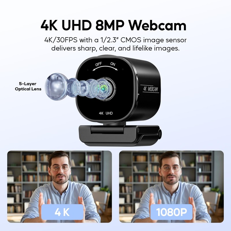 - Dual Noise-Cancelling Microphones for Clear Audio: Say goodbye to background noise! Equipped with dual microphones and advanced noise-cancelling technology, the Holyask 4K webcam ensures your voice is heard clearly and naturally during meetings, online classes, or live gaming sessions. Ideal for busy office spaces or noisy home environments.