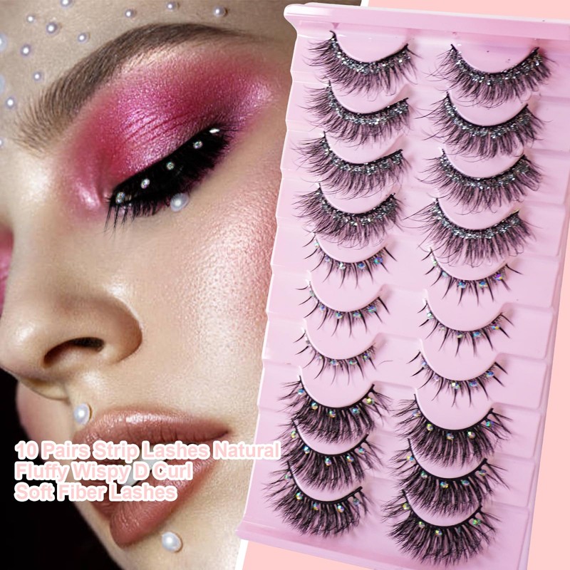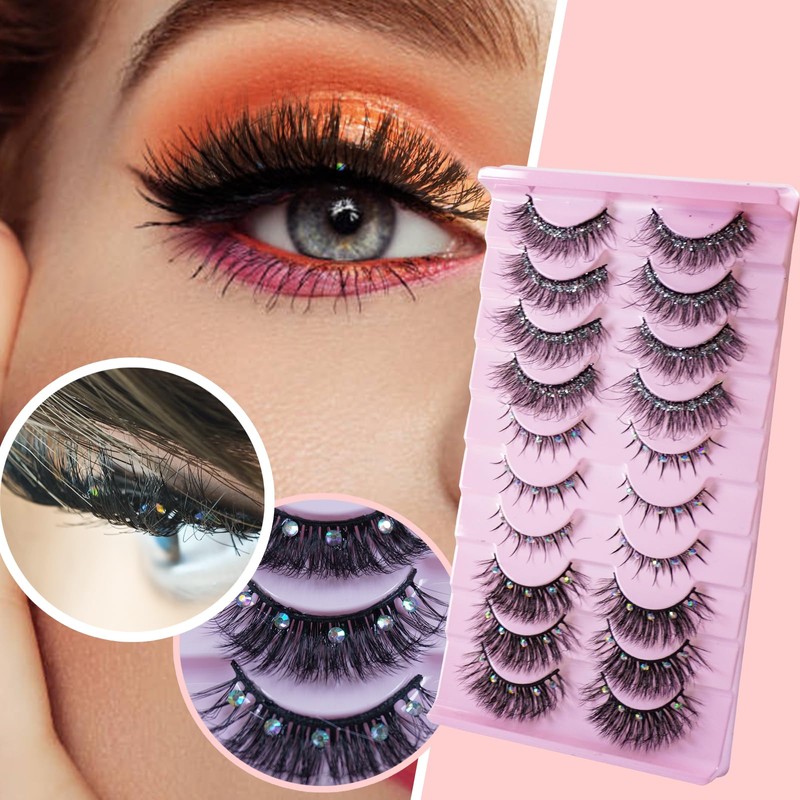 Holzsammlung False Eyelashes, 10 Pairs Glitter Crystal Eyelashes, 11-19 mm, Fake Lashes, Artificial Eyelashes, D Curl Lashes, Faux Fibre, False Eyelashes, Wispy Fluffy DIY Natural Eyelash Extension
