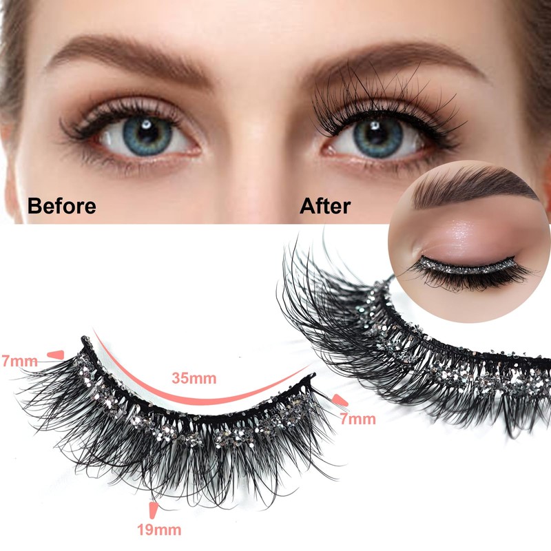 Whether you are preparing for a glamorous stage performance or a themed party, or just want to make a statement with your eye makeup, these glittery artificial high-end fiber eyelashes are the perfect choice