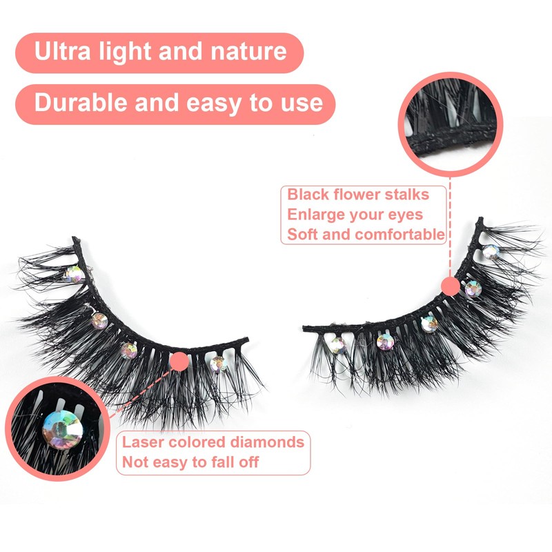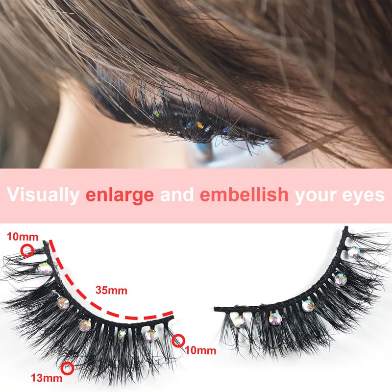 Gemstone Crystal False Eyelashes are a stunning product that is perfect for adding a touch of glamour and sparkle to your eyes on special occasions such as Christmas parties and performances. These false eyelashes are uniquely designed and decorated with a row of dazzling diamond gemstones that are sure to attract everyone's attention.