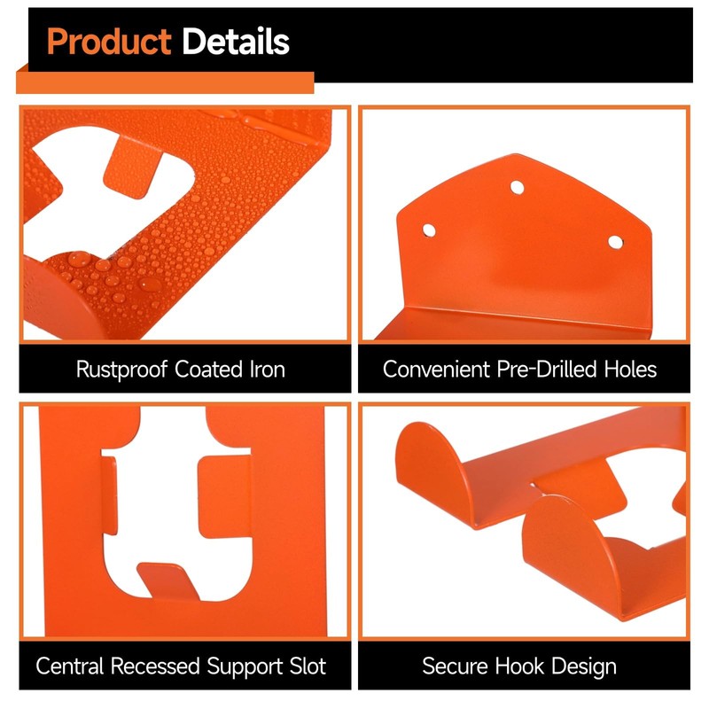 - Versatile Utility: Compatible with a wide range of gardening and shop tools; center recessed support slot securely holds a heavy-duty tool; includes two racks and mounting screws for quick and stable setup