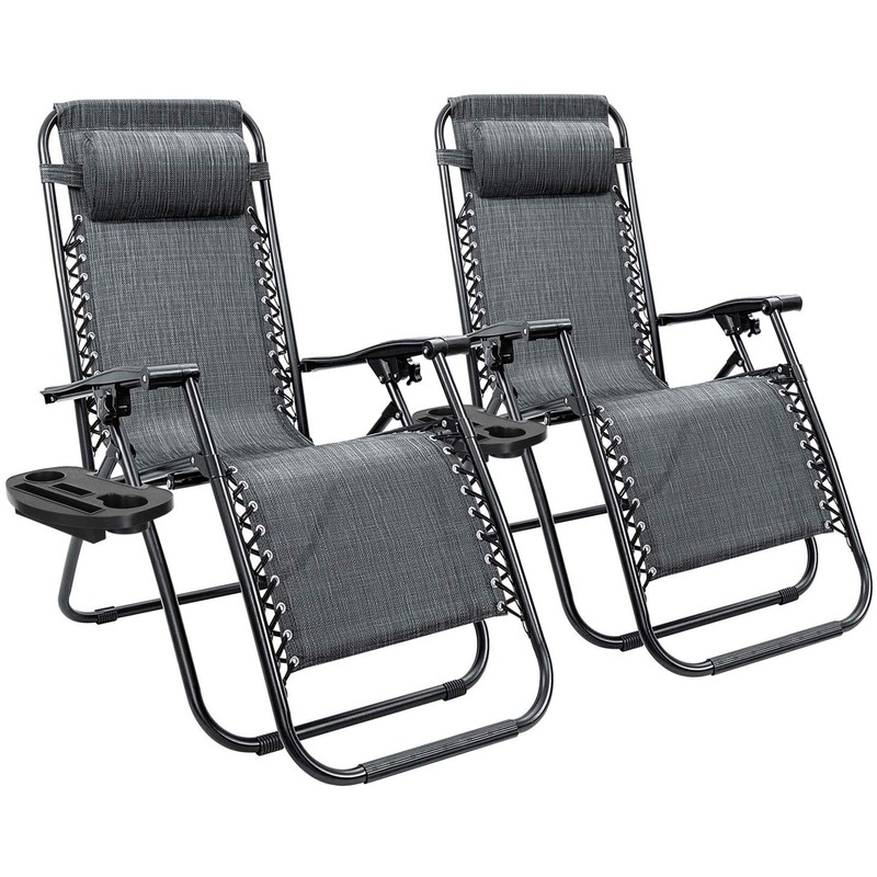 Homall Homall Zero Gravity Chair Adjustable Folding Lawn Lounge Chairs Outdoor Lounge Gravity Chair Camp Reclining Lounge Chair with Pillows for Poolside Backyard and Beach Set of 2 (Double-Gray)