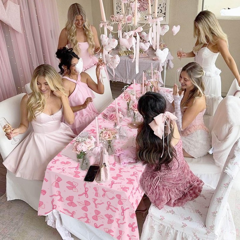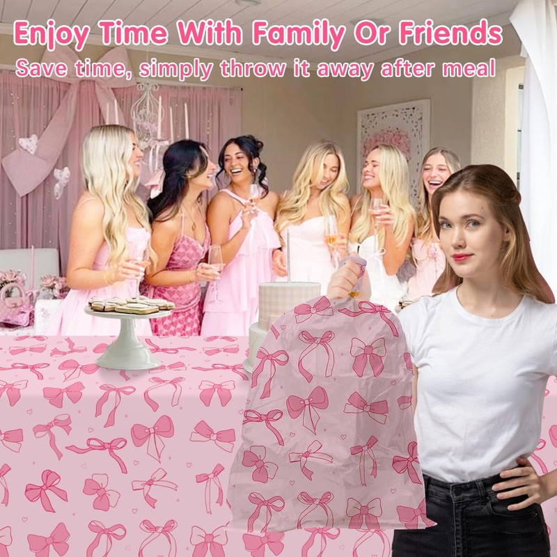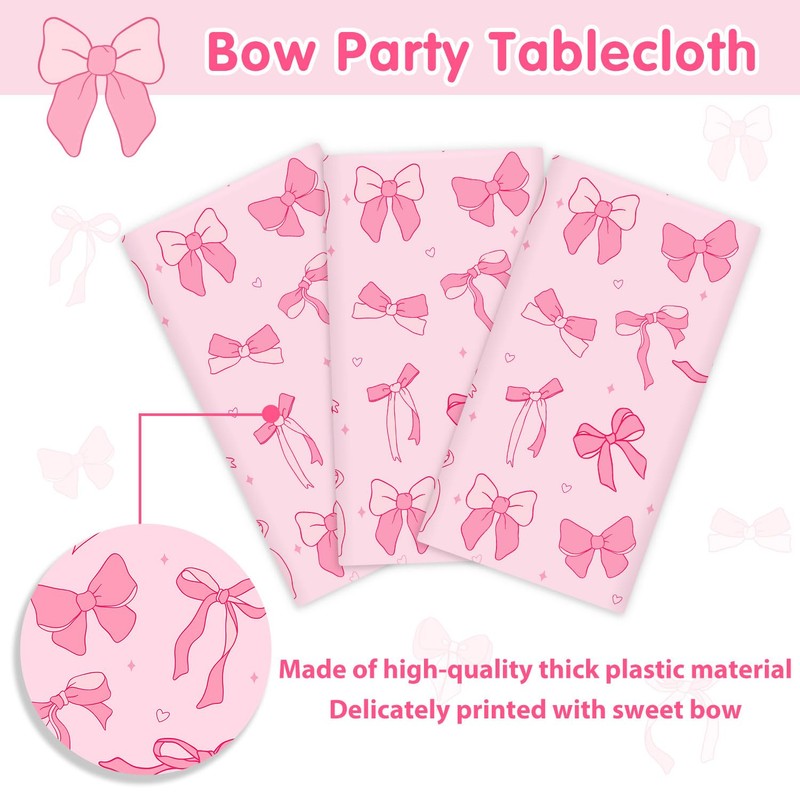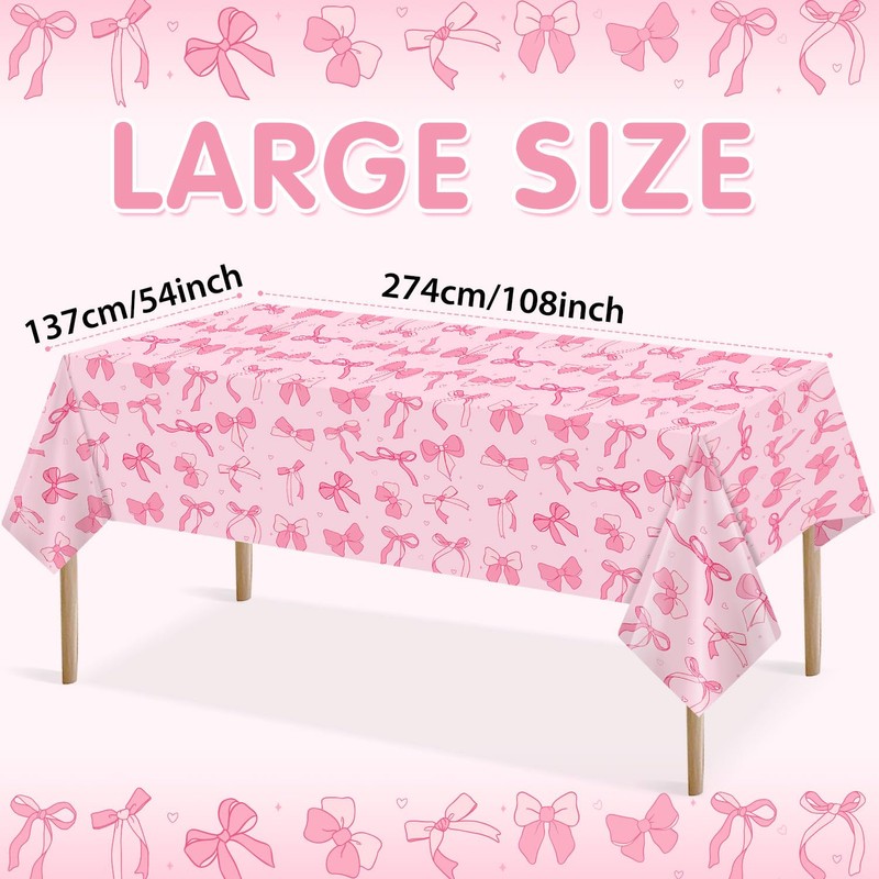 - 【Wide Application】Sweet bow birthday decorations tablecloth for any age, the bow tablecloth can fit well with your other bow pink birthday party decorations, bring your decorations together beautifully.