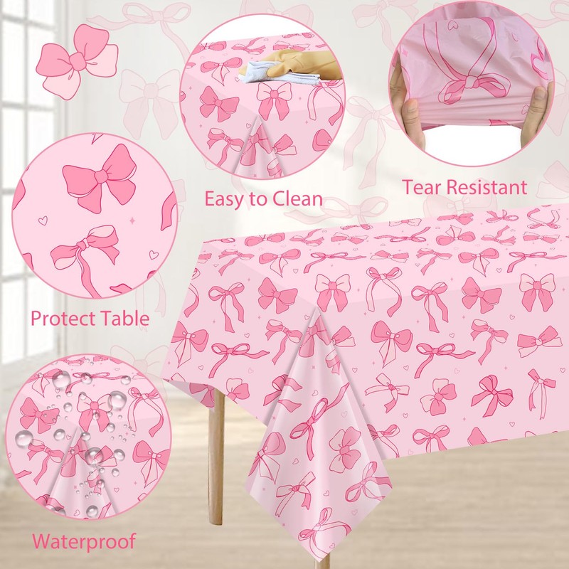 - 【High-Quality Thicken Material】Made of thicken PE plastic material, waterproof and oil-proof, sturdy and foldable, not easy to break or tear, effectively protecting your tables from stains and scratches, provide an unforgettable bow pink birthday party.