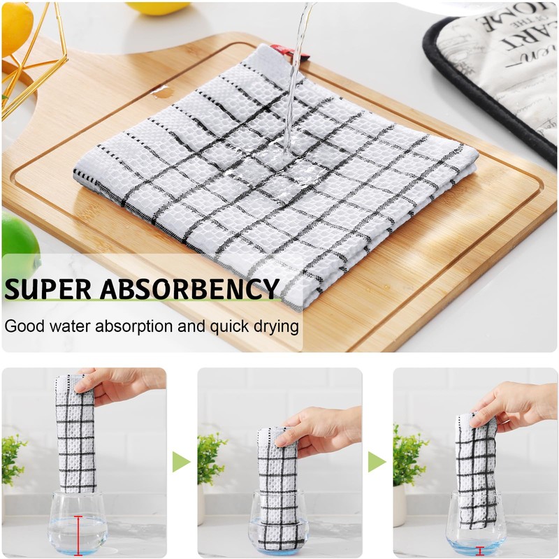 - HIGHLY ABSORBENT: These dish cloths are crafted from 100% cotton and feature a waffle weave texture. This design gives them exceptional absorbency, allowing them to quickly soak up spills and messes