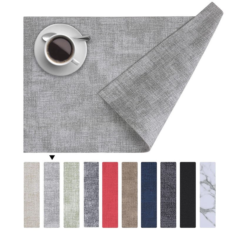 Homaxy Faux Leather Heat Resistant Placemats for Dining Table Set of 6, Waterproof Wipeable Washable PU Table Mats, Easy to Clean Anti-Slip Place Mats, 11.8" x 17", Light Grey