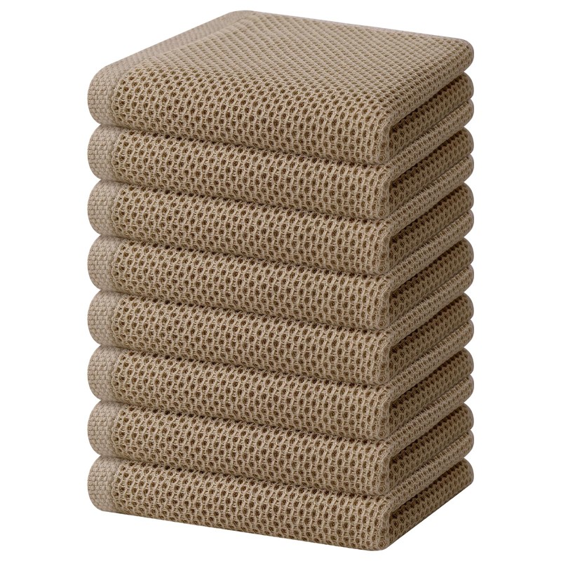 Homaxy Homaxy 100% Cotton Waffle Weave Kitchen Dish Towels, Ultra Soft Absorbent Quick Drying Cleaning Towel, 13 x 28 Inches, 8-Pack, Tan