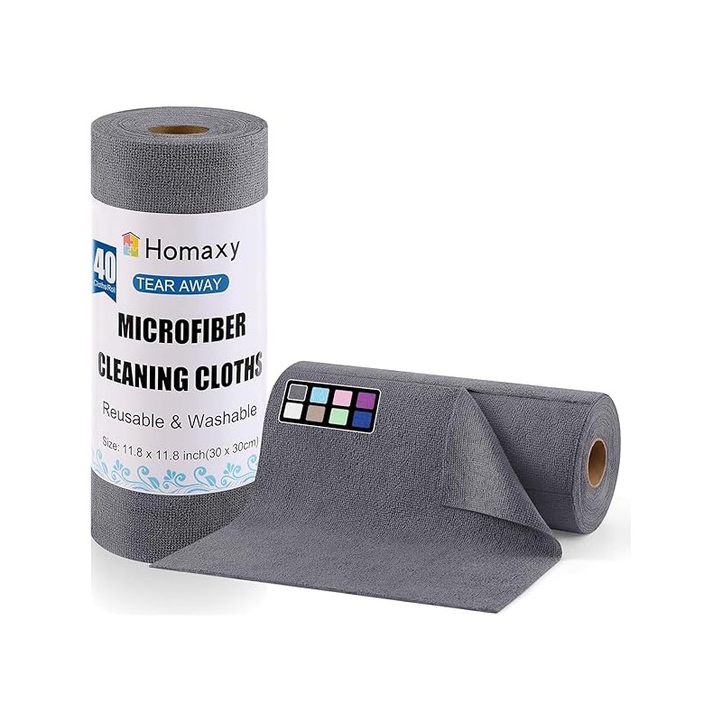 Homaxy Tear Away Dish Cloths Rolls, 40 Sheets-11.8" X 11.8", Reusable Washable Dish Towels for Kitchen, Ultra Absorbent and Quick Drying Microfiber Cleaning Rags, Grey