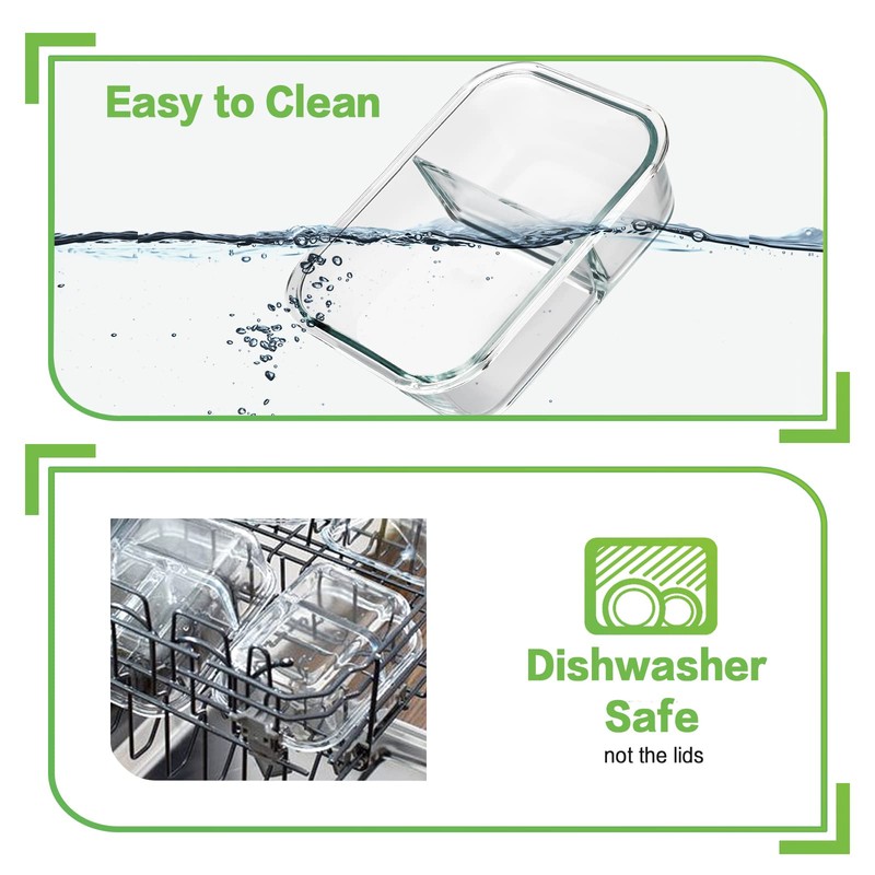 • [BPA Free & Easy to Clean] BPA-Free plastic locking lid is safe as well as leakproof. Crystal clear borosilicate glass is easy to clean without absorbing stains or smells. They are dishwasher safe to free your hands. Also the silicone seal is removable for your to clean and dry it. In order to prevent seal sticking to the containers, please must wash the lids and containers before put them away