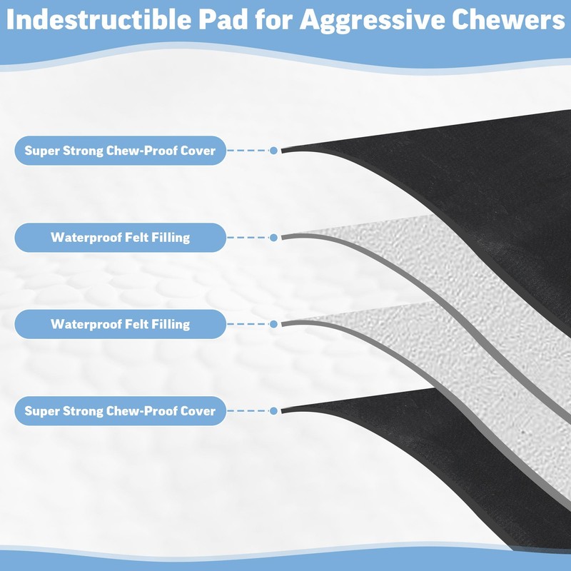 - 【5 LAYERS PROTECTION】: High Tech Chew Proof Fabric+ Super absorbing mat + Waterproof PU shell + Super absorbing mat+High Tech Chew Proof Fabric.The dog pee pad polyester knitting surface for ultimate comfortable; Super absorbent high density middle layer; Breathable waterproof PUL inner layer.Your furry friends will definitely like it