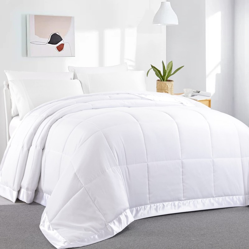 HOMBYS Down Alternative Blanket Oversized King 120x120 for All Season, Lightweight Quilted White Bed Blanket with Satin Trim,Reversible Soft Microfiber Quilted Blanket