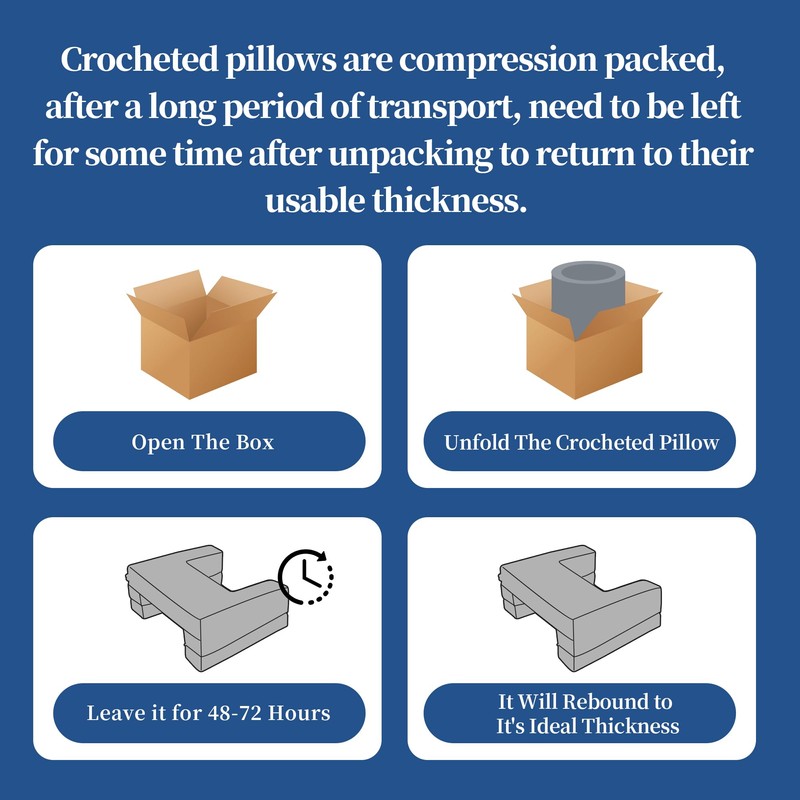 • 【Product Details】The product size is 21.7 ‘W * 20 “L * 11 ”H. The fabric is soft velvet, the filling is high density foam, 2 heights are adjustable (the crochet pillow can be converted between 11 inches and 8 inches). The product is designed with a small pocket for crochet hooks and an elastic band, convenient for you to store your crochet hooks.