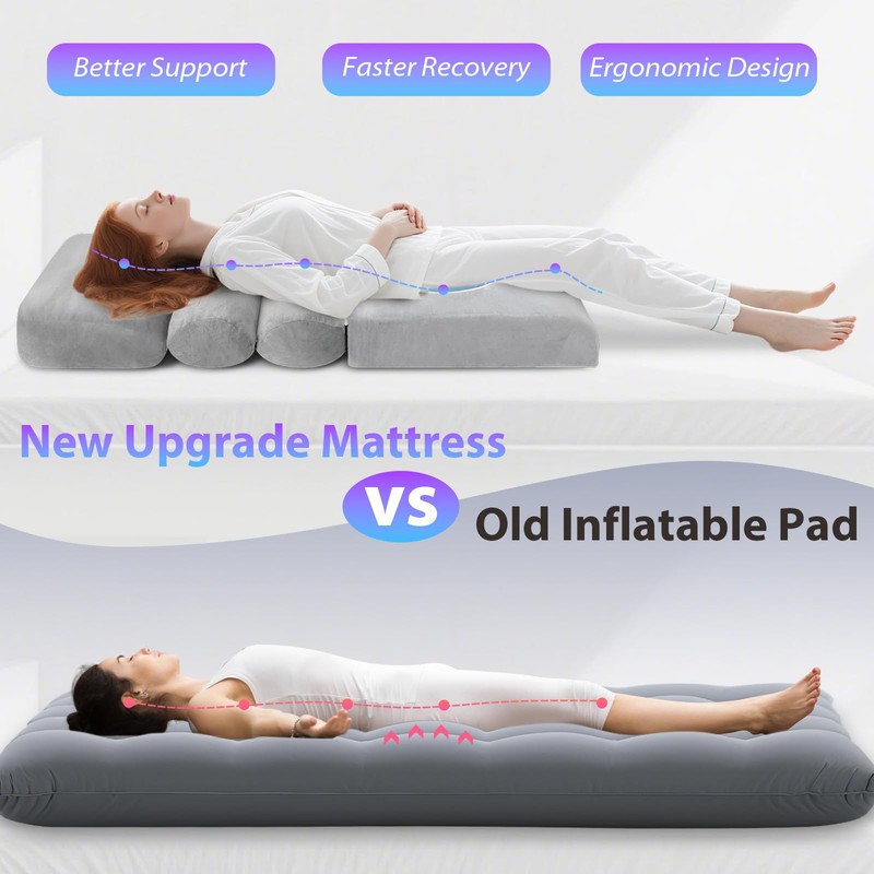 - 【Adjustable & Ergonomic Support】Our BBL mattress features a modular design with separate pillow sections for the head, back, and legs. This structure improves spinal alignment, provides targeted support, and relieves muscle tension—making it ideal for long rest periods during recovery.