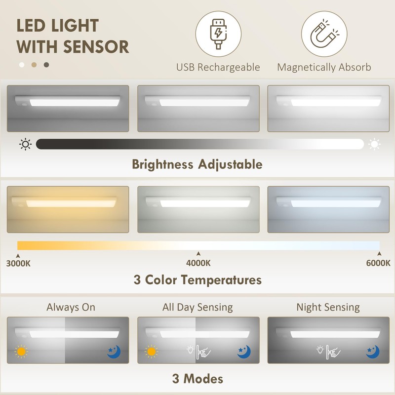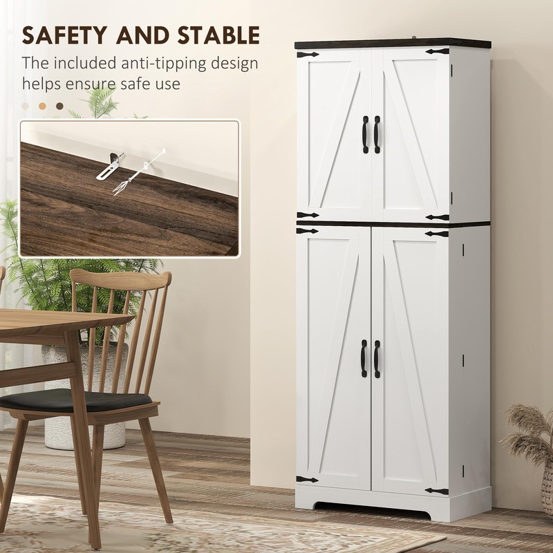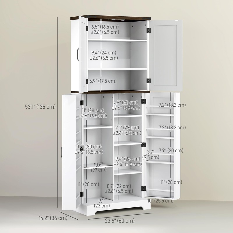HOMCOM 64" Kitchen Pantry Cabinet with Motion Sensor Light, Tall Storage Cabinet with Adjustable Shelves, Cupboard for Living Room, Dining Room, White