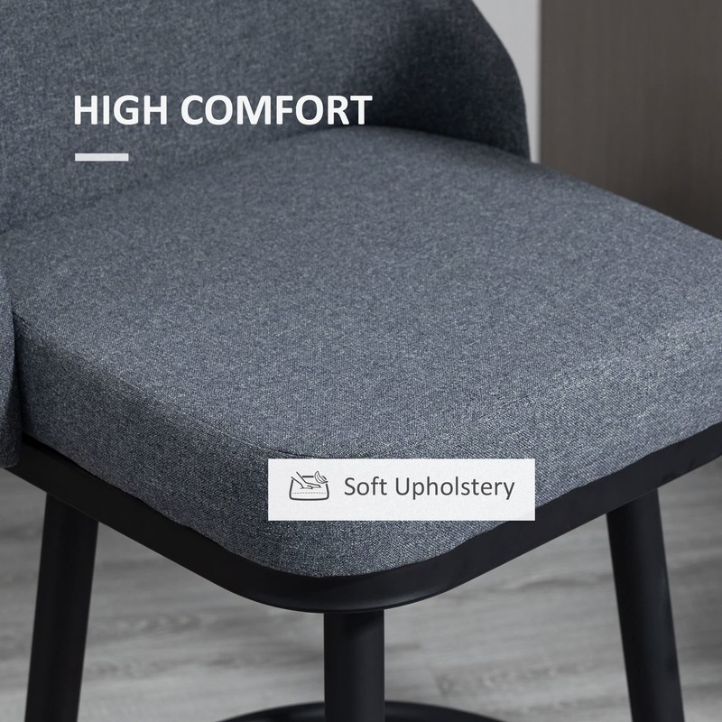HOMCOM Bar Height Bar Stools Set of 2, Modern 360° Swivel Barstools, 29.5 Inch Seat Height Upholstered Kitchen Chairs with Steel Legs and Footrest, Dark Grey