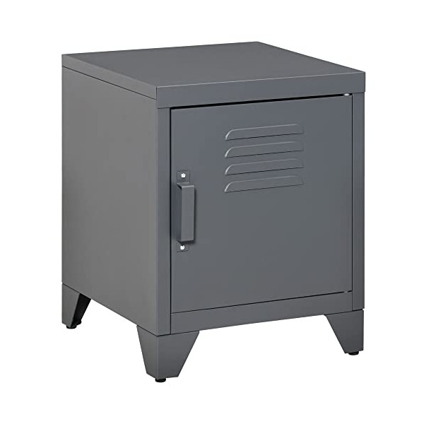 - LOCKER DESIGN: This end table has a metal frame with a louvered door that creates an industrial, locker-style accent to your bedroom, living room, or home office.
