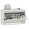 - • Flip Drawer: The drawer has a two-tier adjustable shelf, holding up to eight pairs of shoes (US11 max). For more space for heels or boots, remove the middle shelf