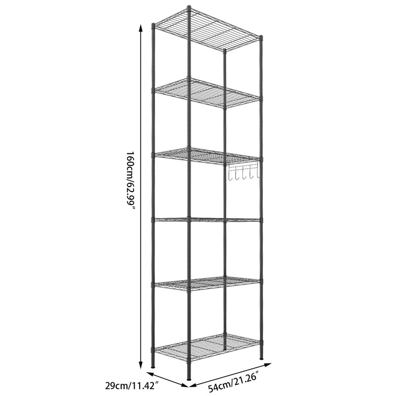 - LARGE SPACE: The 6-tier design and 1 side hanger (with a big size of 21.26 x 11.42 x 62.99 inch) can easily to help you make a neat kitchen, the wire shelf between each layer is adjustable, you can place microwave oven, rice cooker, juicer, etc, the hooks of the side hanger can hang chopping knife, pans, gargle, towels as you like.