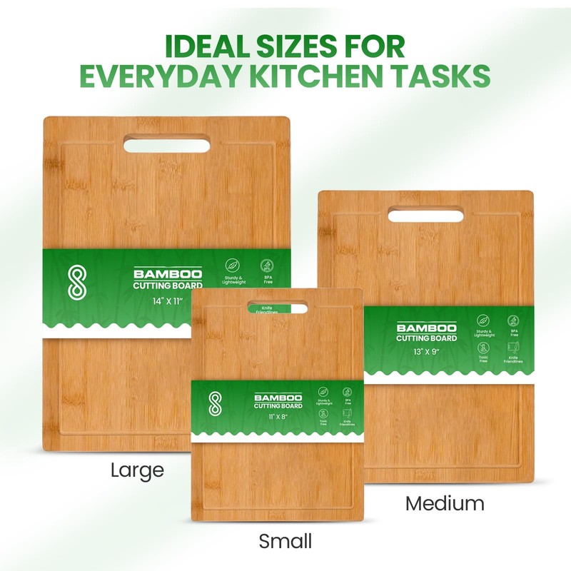 HOME ARCHIVE Bamboo Cutting Board 11"x8" Wodden Chopping Board for Chopping Meat, Vegetables, Fruits, Cheese, Knife Friendly Serving Tray with Handles Juice Groove (Medium)