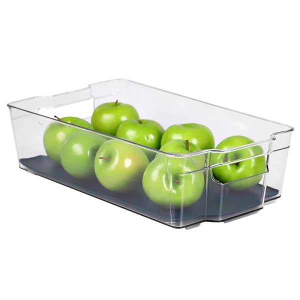 Home Basics Clear Fridge Bin with Rubber Lining Integrated Side Handles, and...