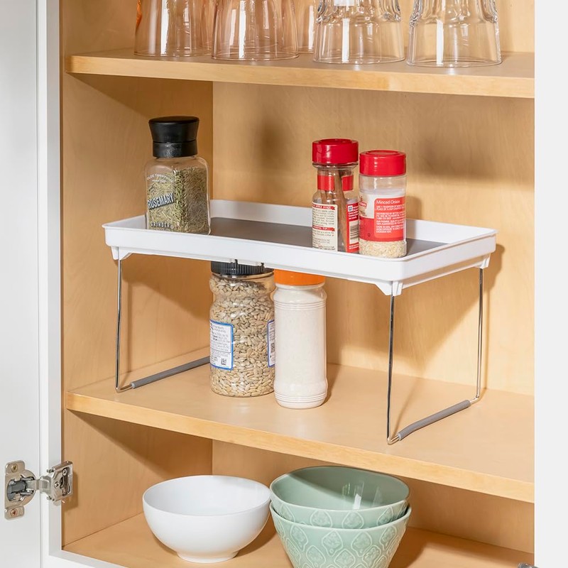 - Single tier design creates two rows of additional space for storage in countertops and pantries
