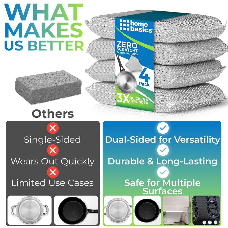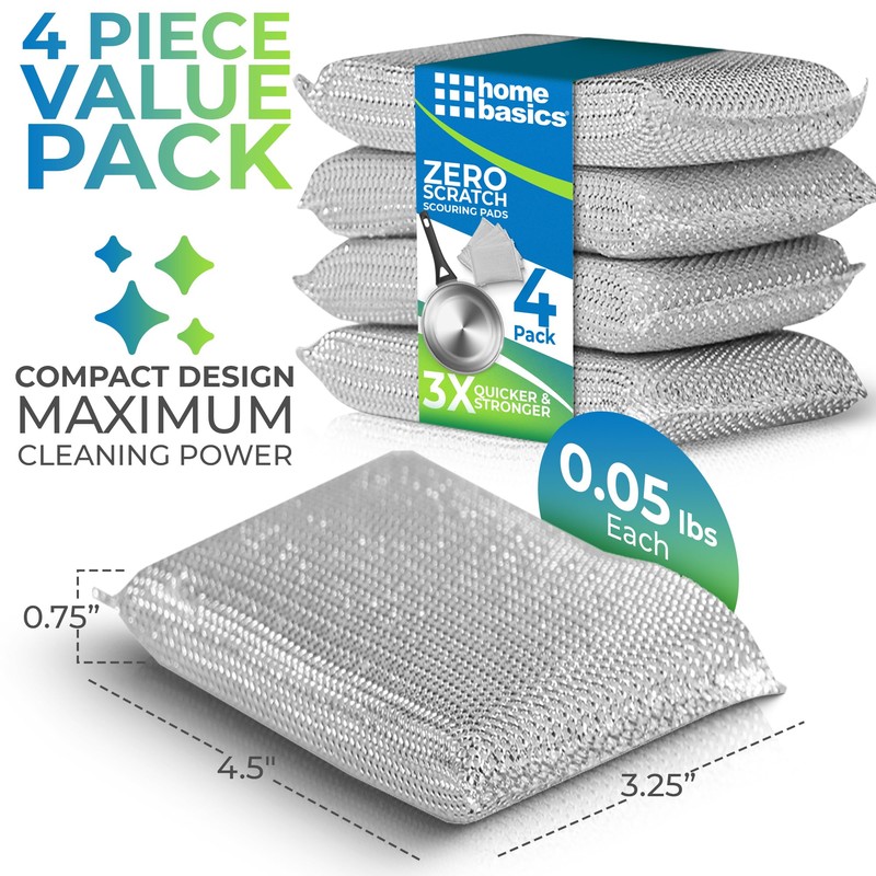 Home Basics Scouring Pads, (Pack of 4), Silver | Dual Sided | Strong Plastic ...