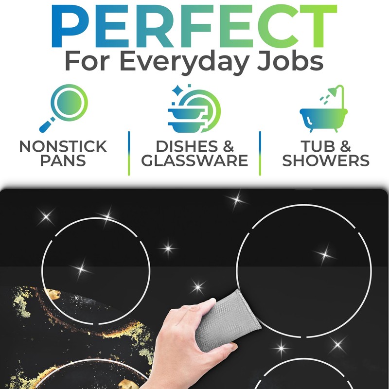 • Remove stubborn bake-on grease and stuck-on residue on appliances, counters, sinks and more