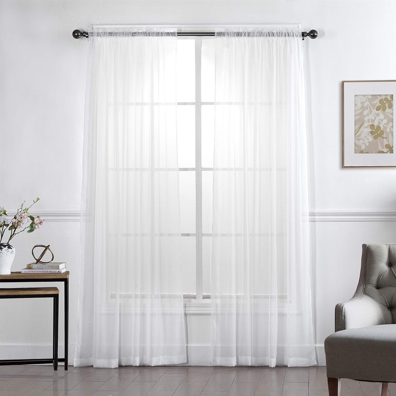 Home Beyond & HB design - White Sheer Voile Curtain Panels with Rod Pocket - ...