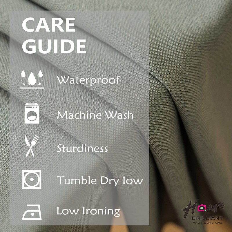 Ready Made: Package contains 1 piece of table cloth: measures width 140cm x length 218cm. Please allow 1~2cm deviation because of hand-cutting and sewing. Waterproof Material:Made of 100% durable polyester fabric with water resistant coating. It can effectively prevent water and blot from splashing. Versatile: Home Brilliant Table Cloth can be used on many places and many occasions: can be used such as kitchen tablecloth, dinning table cloth for daily use, buffet table cover for parties and weddings, outdoor table covers for friends gathering. Easy Care: Machine washable in cold water, tumble dry. Quick ironing when needed.