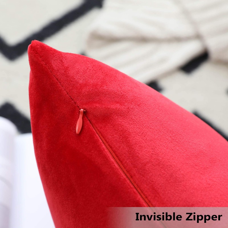 Home Brilliant Red Throw Pillow Covers Modern Accent Velvet Pillow Covers for Couch Bed Room Wedding Party, Set of 2 (45x45cm, 18x18 inches), Ruby Red