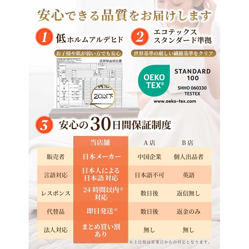 - (Exceeds world-class quality standards! Warm bed pads are compliant with the "OEKO-TEXSTANDARD 100" which recognizes the safety of textiles. In addition, it has proven low formaldehyde, so there is no need to worry about skin damage, so you can offer a high-quality product that you can rest assured of