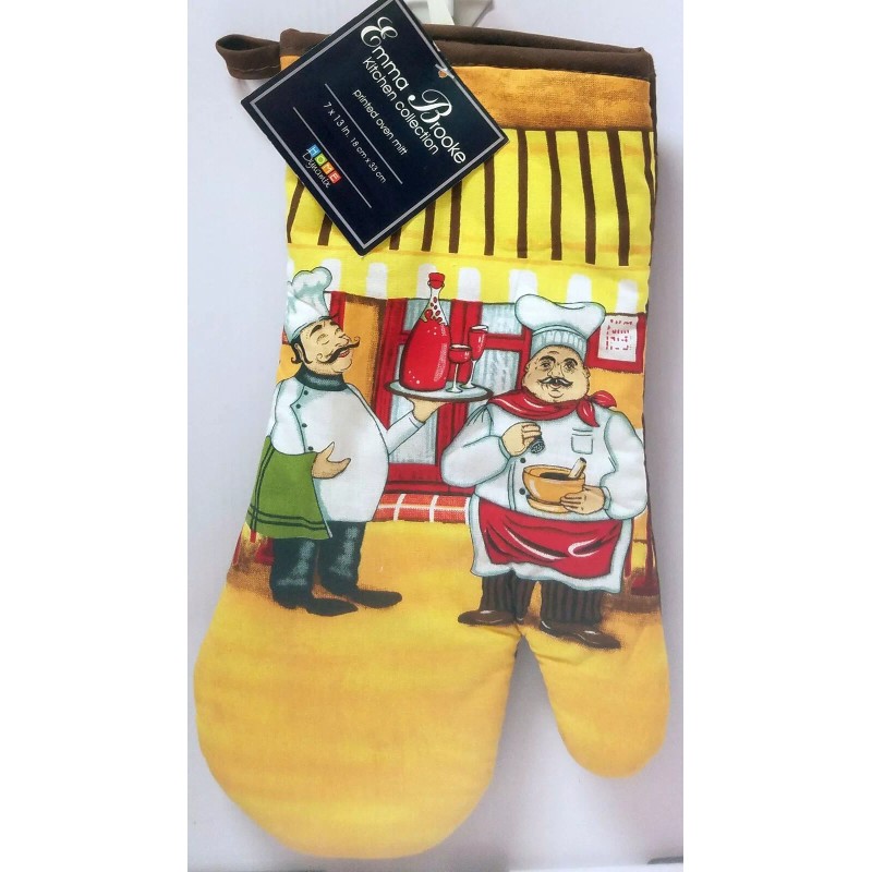 Home Dynamix Printed Fabric Kitchen Jumbo Oven Mitt, 13" , 2 FAT CHEFS with brown back by HD