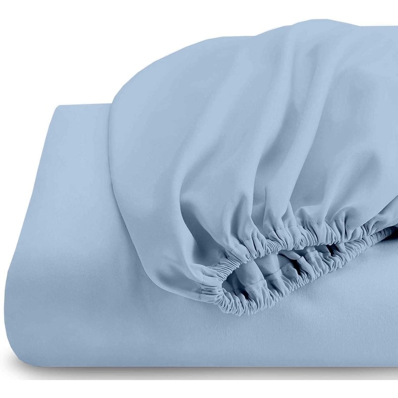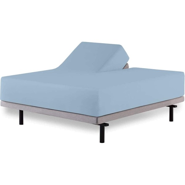 HOME-FURNISH Top Split King Fitted Sheet for Adjustable beds, 1 PC Half Only Down 39 inches from The Top, 600 Thread Count 100% Cotton King, Light Blue