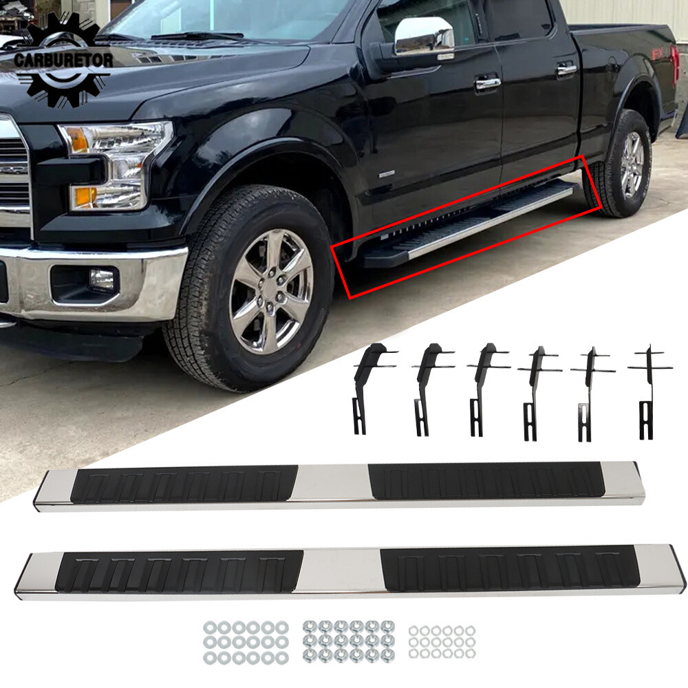 home-garden-fix Pair Boards Side Step Nerf Bars S/S Silver For Ford F150 Super Crew Cab 15-2022